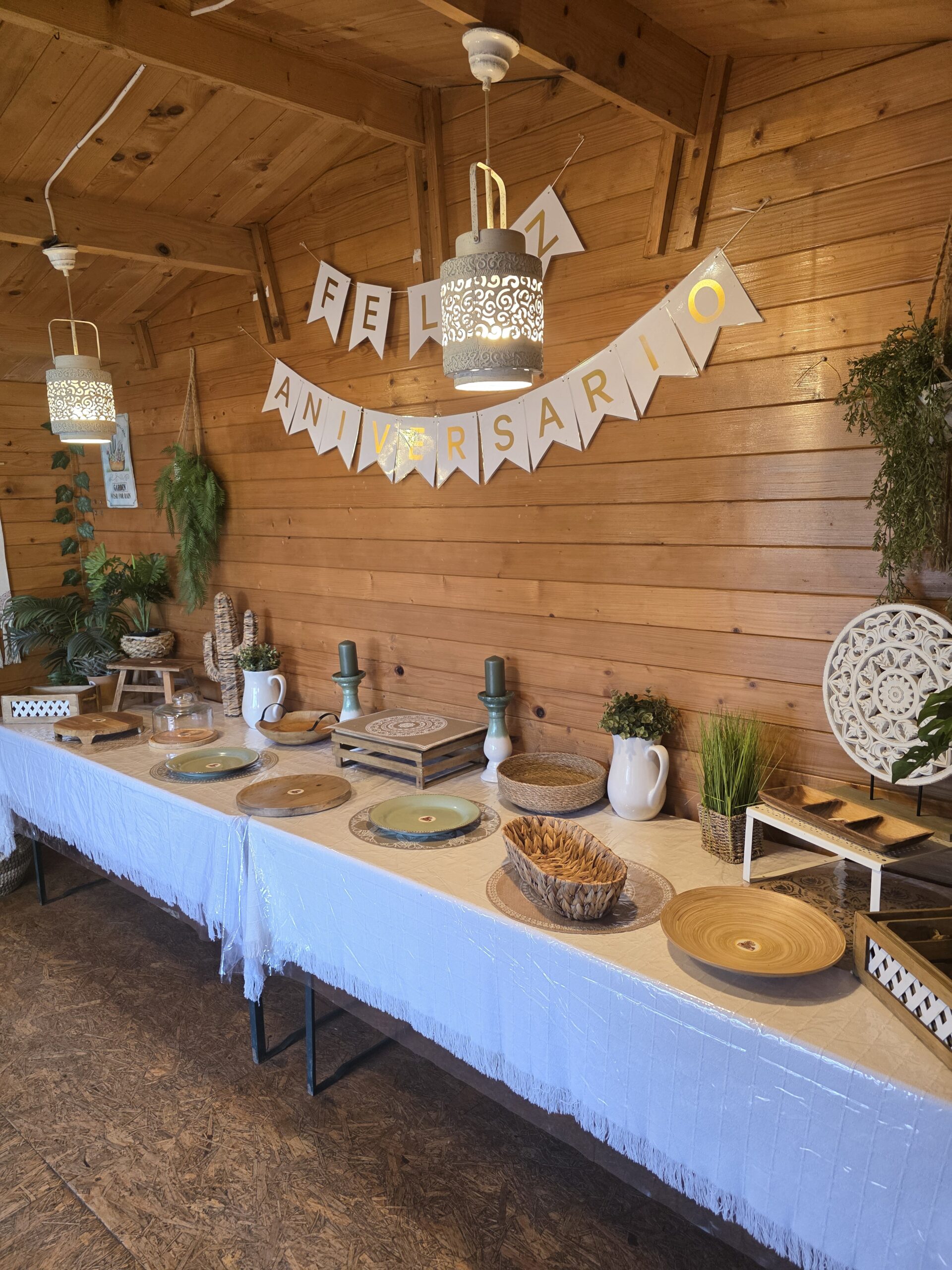 Sala decorada com a nossa decoração base e mesa com 2.40m por 1.20m.